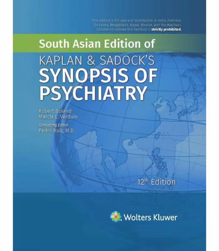 South Asian Edition of KAPLAN & SADOCK’S SYNOPSIS OF PSYCHIATRY Accurate, reliable, objective, and comprehensive, Kaplan & Sadock’s Synopsis of Psychiatry has long been the leading clinical psychiatric resource for clinicians, residents, students, and other health care professionals both in the US and worldwide. Now led by a new editorial team of Drs. Robert Boland and Marcia L. Verduin, it continues to offer a trusted overview of the entire field of psychiatry while bringing you up to date with current information on key topics and developments in this complex specialty. The twelfth edition has been completely reorganized to make it more useful and easier to navigate in today’s busy clinical settings.