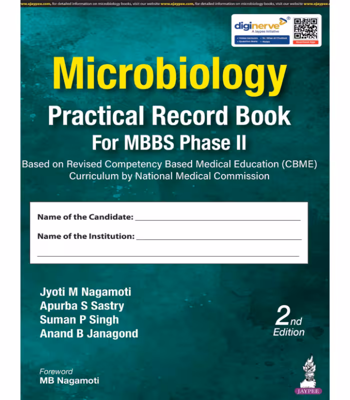 This Record Book is designed on the sound principles of Revised Competency Based Medical Education (CBME) Curriculum. The approach is System based rather than traditional Organism based. Authors had conducted and have incorporated the results/inputs from a national survey of Microbiology faculty members across 58 medical colleges of India on Strengthening clinical microbiology skill acquisition in designing the practical teaching sessions. Practical topics are selected from shows how and does levels of competencies, certifiable skills and AETCOM competencies from NMC Curriculum document. Practical exercises are designed to help the students to correlate the knowledge acquired in lectures with applied microbiological concepts in a case-based/problem-based manner so that they should be able to practice as competent doctors.Each topic is dealt under the headings of (1) Competencies covered (as per NMC curriculum document), (2) Specific Learning Objectives (SLO), (3) Case/Problem based discussion, (4) Activities and exercises in the form of DOAP and recording of observations in the book, (5) Certifiable Skill assessment and AETCOM competency assessments (in relevant topics), and (6) Feedback to students.