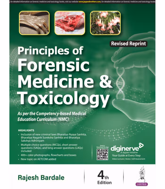 The fourth edition (revised) is prepared as per Competency-Based Medical Education (CBME) 2024 as prescribed by the National Medical Commission. All chapters are revised, and separate topics on AETCOM, mass disaster, forensic odontology, domestic violence are included. Newer poisons like neonicotinoid insecticide and plant growth regulator are included. Most of the chapters include Clinical€“ Forensic correlation to facilitate easy learning of the subject. Multiple choice questions (MCQs), short answer questions (SAQs), and long answer questions (LAQs) are included at the end of chapters, and it will give an idea to students for their preparation in final examination. Considering the recent amendments in various Acts like Bharatiya Nyaya Sanhita 2023, Bharatiya Nagarik Suraksha Sanhita 2023 and Bharatiya Sakshya Adhiniyam 2023 are included and a number of landmark judgments given by the honourable Supreme Court of India; the text has been updated extensively like the Medical Termination of Pregnancy Act (Amendment) 2021, the Medical Termination of Pregnancy Rules 2021, the Assisted Reproductive Technology (Regulation) Act 2021, the Assisted Reproductive Technology (Regulation) Rules 2022, the Surrogacy (Regulation) Act 2021, the Surrogacy (Regulation) Rules 2022, etc.