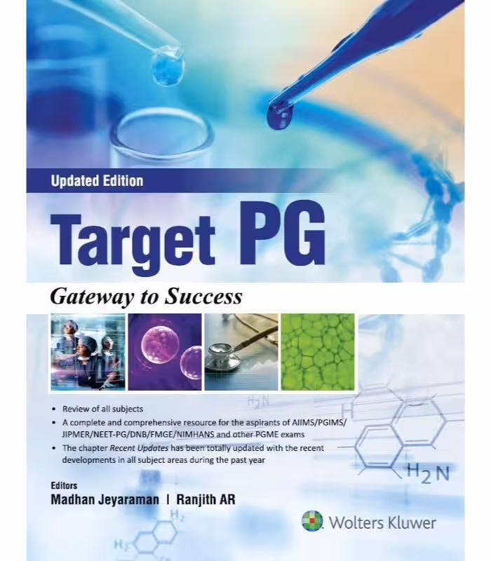 The first edition of Target PG (The Aspirants Choice of Twenty Subjects) is presented as a lucid and comprehensive material for NEET examinations. It is thoroughly prepared with the latest pattern of examinations and updated till date. Salient features, simplified book for last minute revision, nutshell review of all chapters, 2000 plus Important oneliners have been discussed, 1000 plus highyield tables, metabolic pathways and images for easy understanding, key points given in tables and boxes.